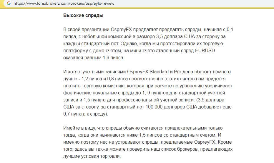 - Отзыв о мошенниках Оспрей ФХ - уж больно высокие спреды накручивают жулики