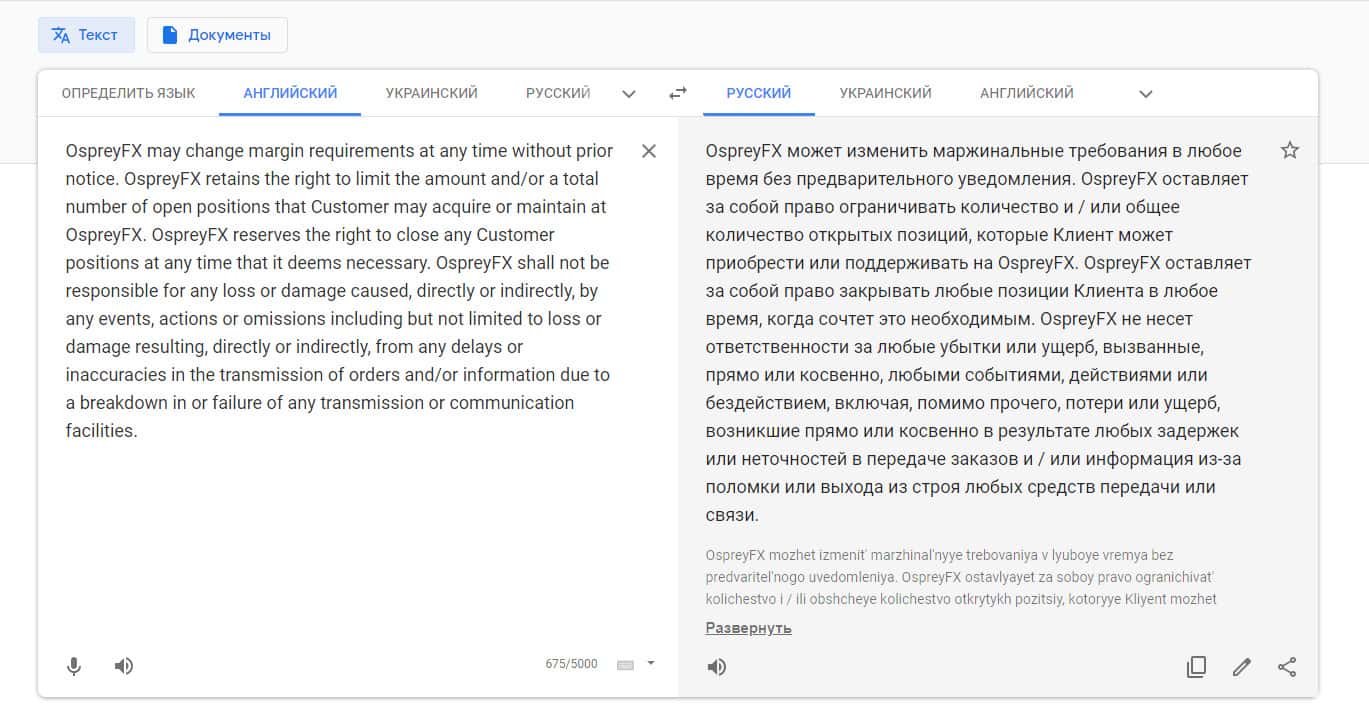 И снова на те же грабли: очень мала вероятность того, что пользователь станет читать массу строк текста с непонятными обычному обывателю терминами, поэтому шарлатаны Osprey FX уверенно замыливают глаза. Например то, что компания не несет ответственности за убытки, может ограничивать суммы, требования и т.д.
