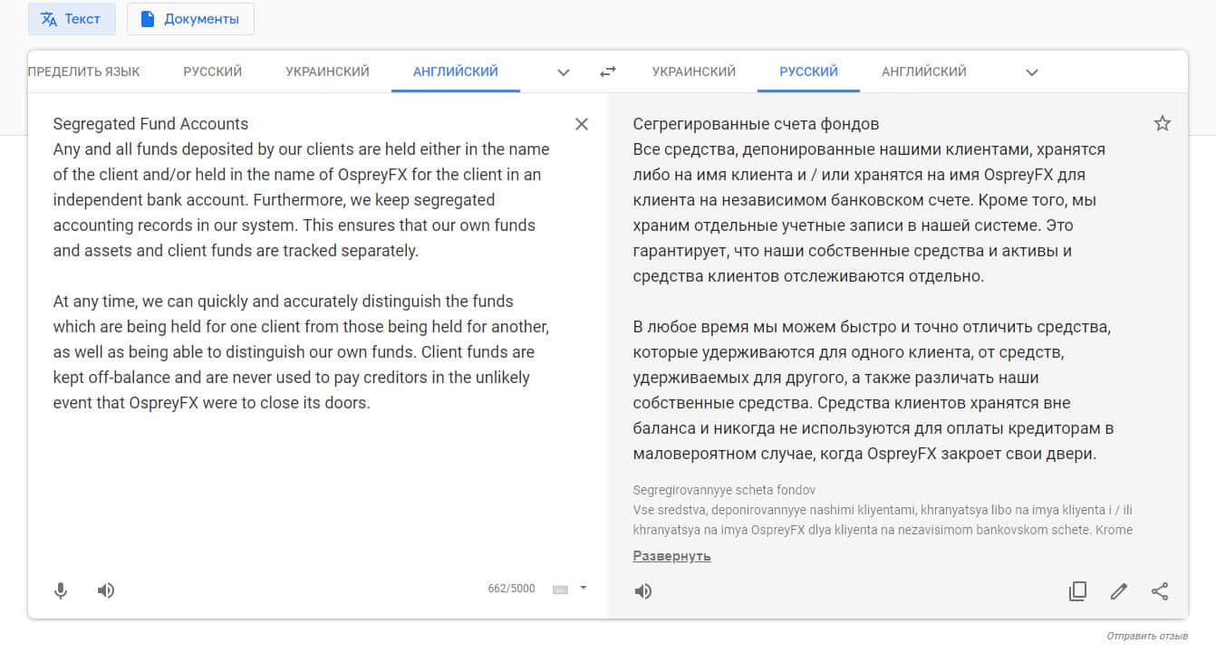 В связи с тем, что сайт мошенников Оспрей ФХ англоязычный, в помощь читателю приводим ниже перевод одного из пустых обещаний по поводу защиты средств и общей информации пользователей этой подвальной конторы. Нет никакой конкретики, что доказывает их несерьезность и то, что лучше с Osprey FX не связываться.