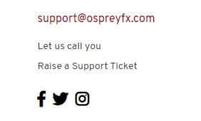 Мошенническая контора ОспрейФХ по большей части не раскрывает все свои контактные данные, и предпочитает обратную связь с пользователем после заполнения формы. Но как обычно, когда клиентов аферисты превратят в жертв, то лохотрон просто перестанет отвечать даже на нижеуказанные контакты: