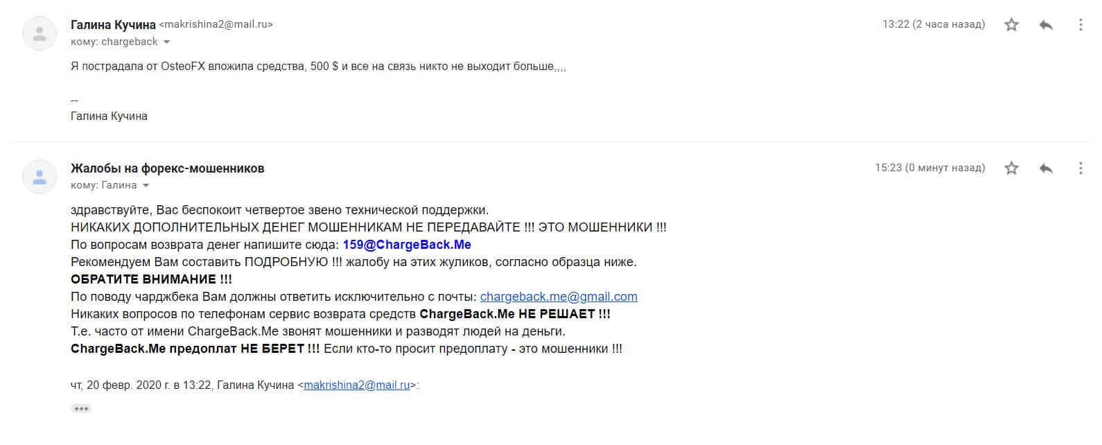Относительно попытки вернуть вложенные деньги обратно от МОШЕННИКОВ Остео ФХ - напишите сообщение на мыло: [email protected]