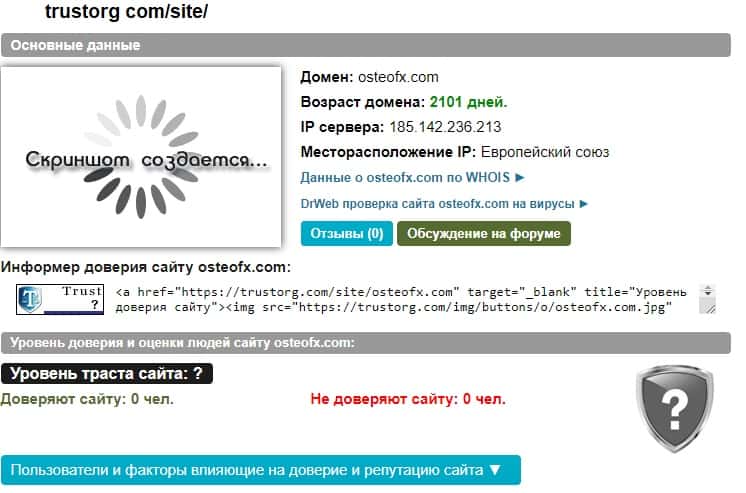 Жулики Остео ФХ очень постарались скрыть все следы. Удалив сайт с разводом, они тщательно зачистили просторы интернета. Теперь найти какую-либо информацию о лохотроне очень сложно. Сайту Доверие в Сети тоже ничего не известно. Известен возраст домена, это больше шести лет. Помните, не бывает бесплатного в интернете.