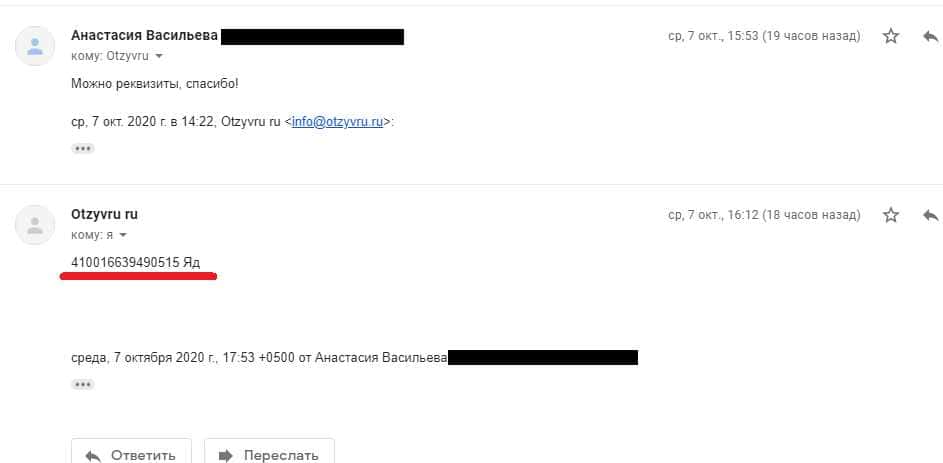 Далее информационные мошенники OtzyvRu Com указала, что принимают оплату на Яндекс кошелёк. данная система оплаты позволяет сохранять анонимность.