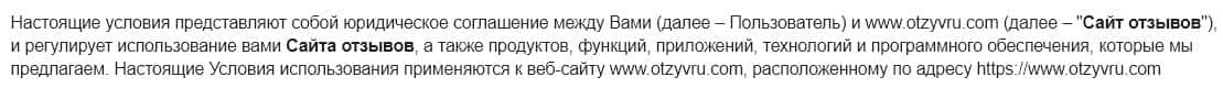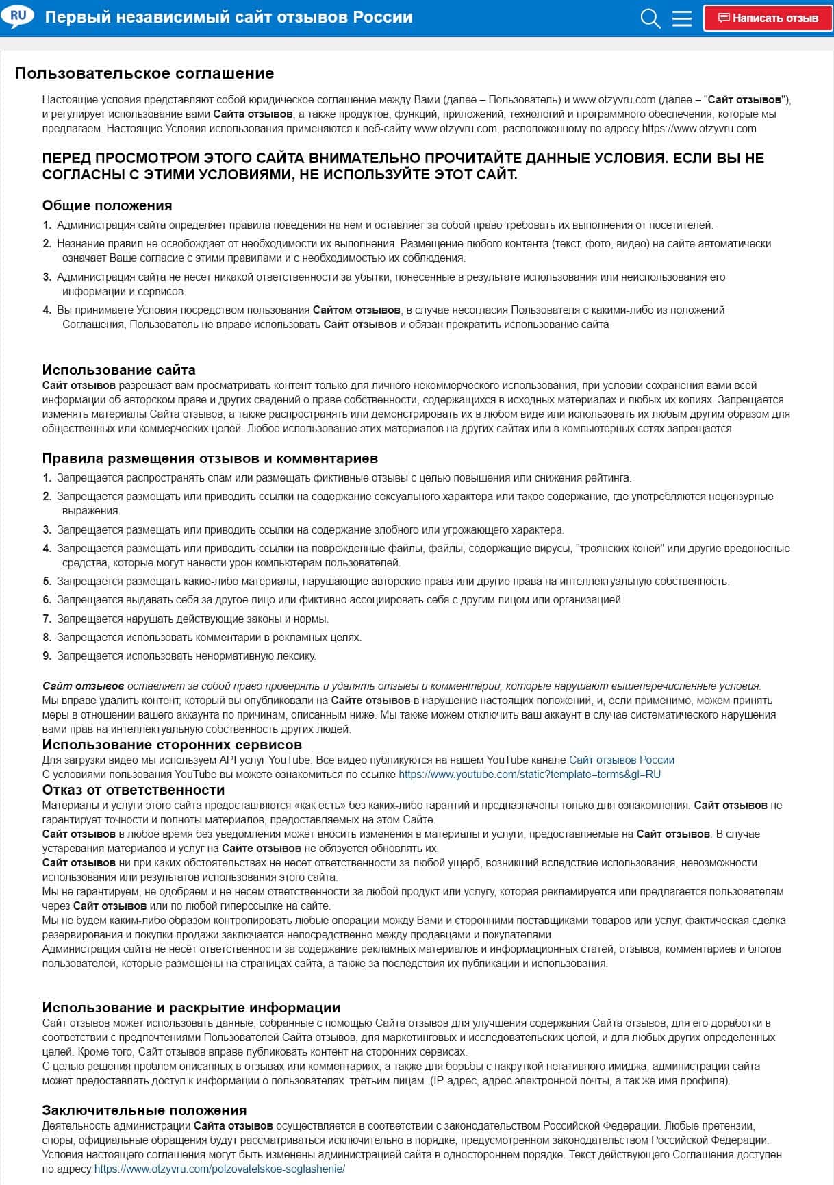 Обзор клиентского соглашения, опубликованного на портале отзовика OtzyvRu Com