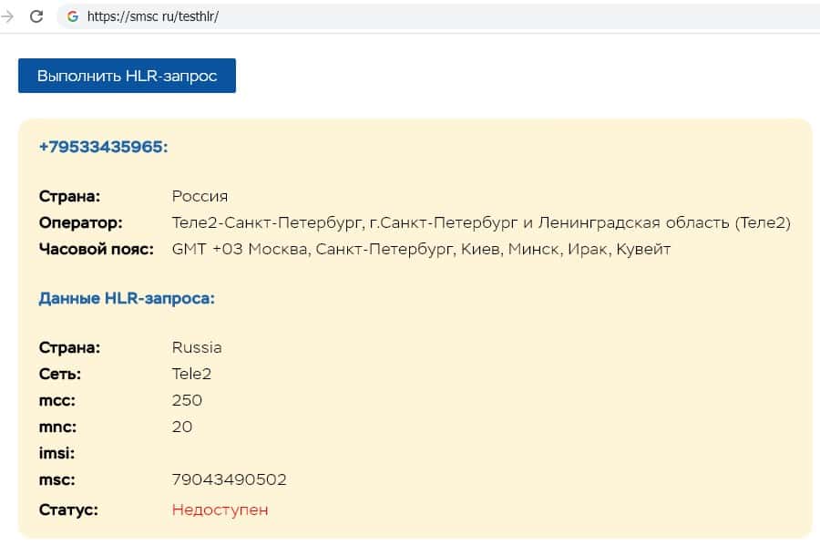 smsc ru testhlr - сервис проверки телефонных номеров посредством HLR-запроса