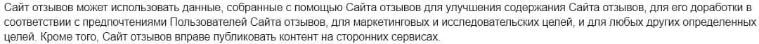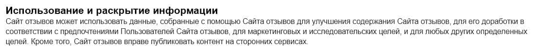 Администрация сайта может использовать собранную сайтом информацию (отзывы и контактные данные клиентов) "для любых других определенных целей".