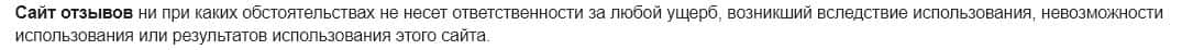 В пунктах г правилах размещения отзывов администрация портала перекладывает всю ответственность за размещаемую информацию на клиентов, оставляющих отзывы.