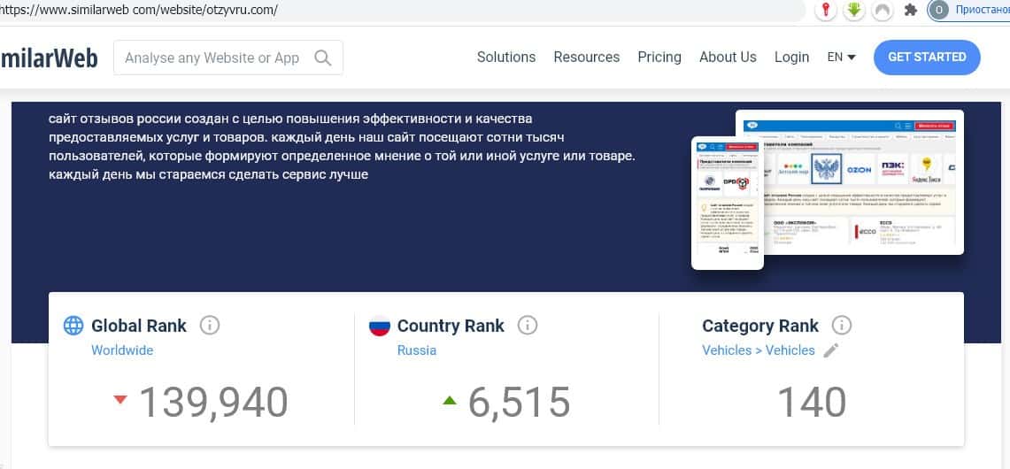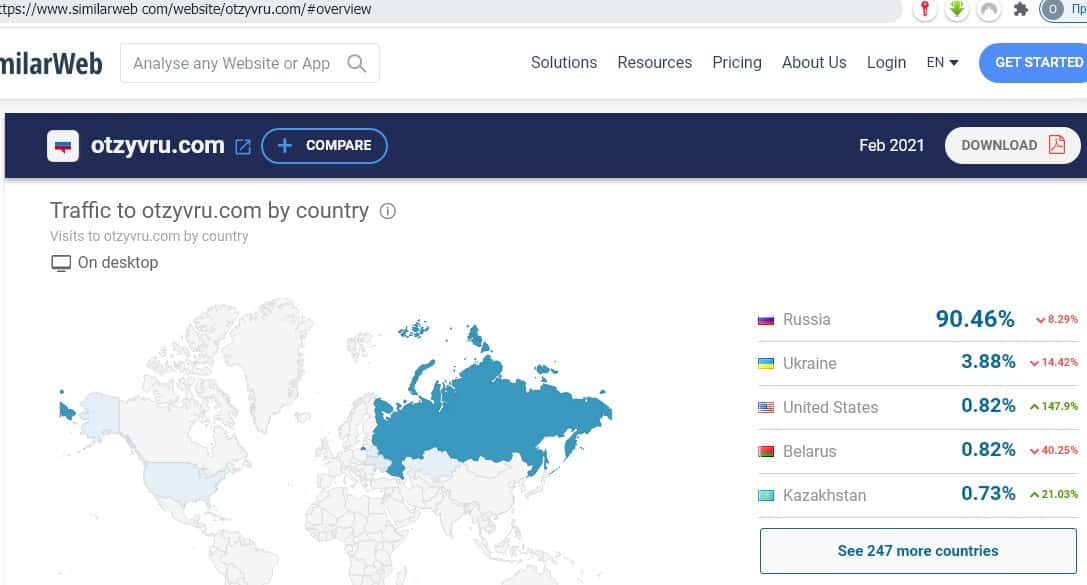 По данным портала similarweb портал отзывов о сервисах, компаниях, службах и лицах Российской Федерации имеет свою аудиторию и пользуется кой-какой популярностью.