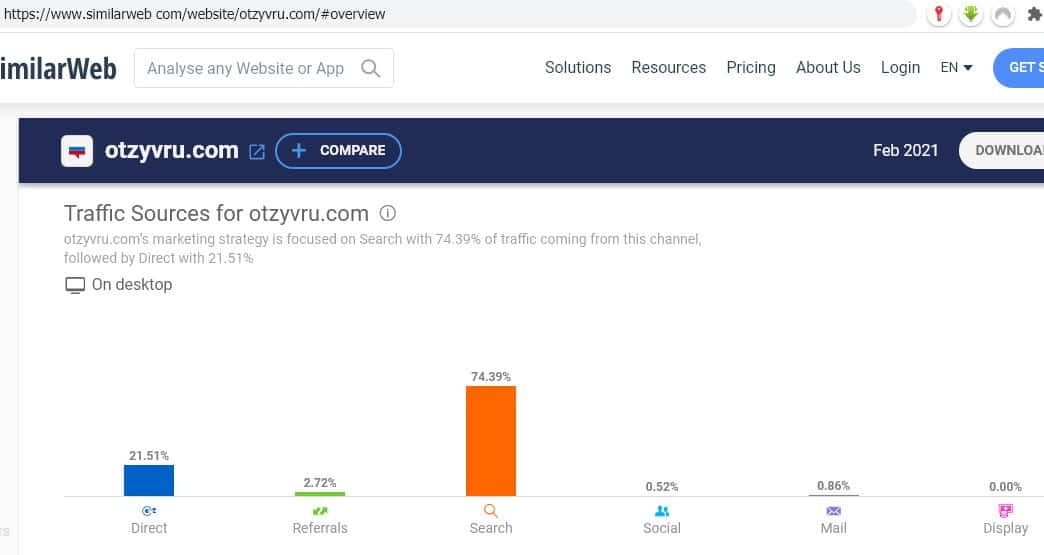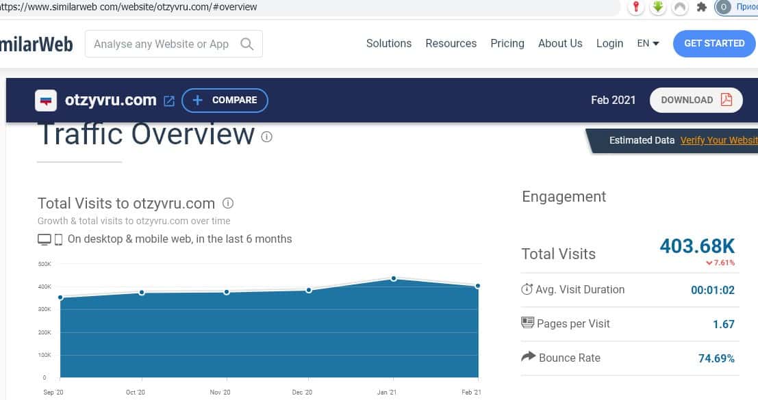 Аналитический обзор проекта публикаций отзывов OtzyvRu Com сервисом similarweb com