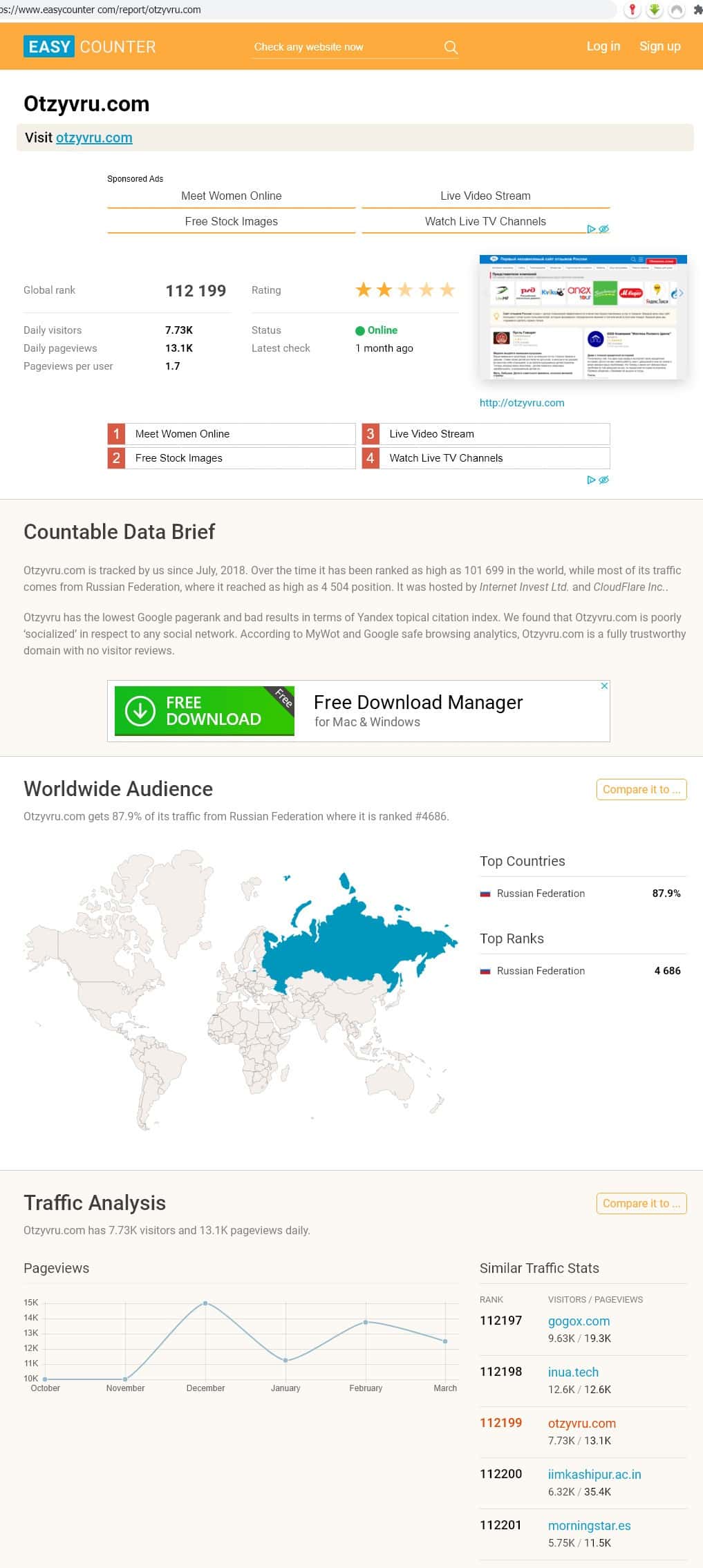 Анализ посещаемости портала OtzyvRu Com по сведениям сервиса easycounter