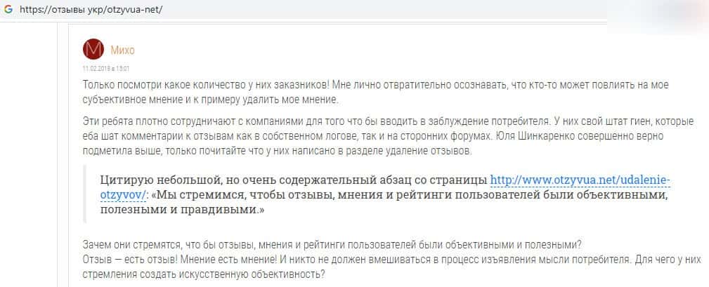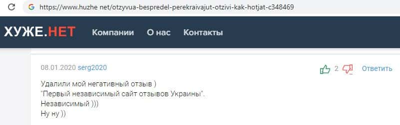 Махинаторский отзовик OtzyvUa Net зарабатывает на удалении комментариев пользователей