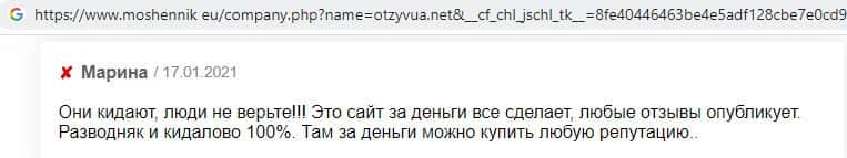 Девушка рассказала, что веб-сайт аферистов OtzyvUa Net за деньги все сделает, любые отзывы опубликует. Так, что эти мошенники промышляют подделкой комментариев за бабки.