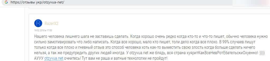 На следующем изображении можно прочесть довольно подробный комментарий пользователя о том, что из себя представляет фиктивный лоховод-отзовик OtzyvUa Net