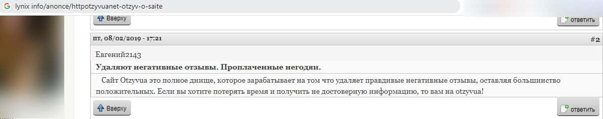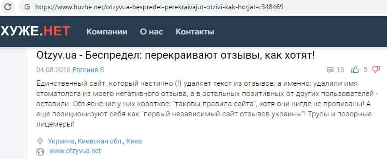 - Махинаторский отзовик OtzyvUa Net зарабатывает на удалении комментариев пользователей