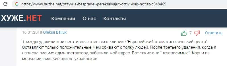 Мужчина сообщил, что его негативные комментарии были также по неизвестным причинам удалены проходимцами OtzyvUa Net с их сайта. Явно, им заплатили те фирмы за эти действия.