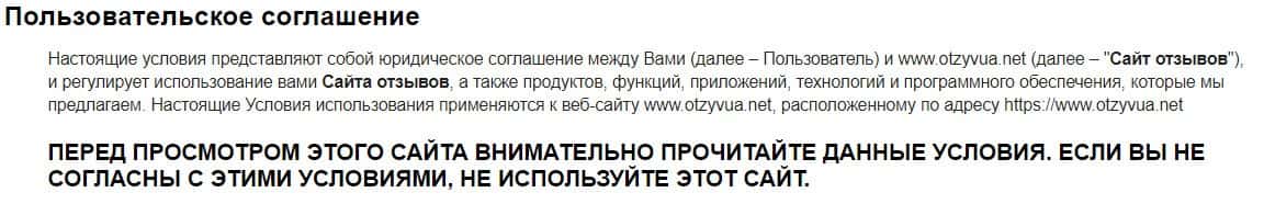 Далее Вы можете ознакомиться с полным текстом клиентского соглашения фиктивного отзовика ОтзывЮа Нет и увидеть воочию, что оно имеет много нечестных уловок и афер.