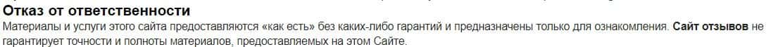 Жулики OtzyvUa Net заявили, что не несут никакой ответственности за убытки, понесенные в результате использования или неиспользования его информации и сервисов. Кидалово.