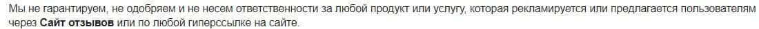 В соглашении говорится, что ворье ОтзывЮа Нет не несут ответственности за любой продукт, который рекламируется на их же собственном интернет-портале. Беспредел какой-то.