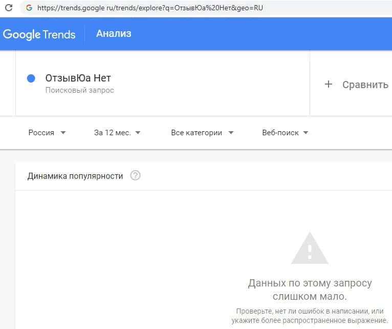 Касательно поиска на интернет-портале Google доменного названия "ОтзывЮа Нет" на русском языке с одним пробелом, то он также оказался, к сожалению, безуспешным.