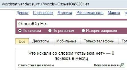 Нуль запросов в месяц в поисковике Yandex осуществляли по аферному лоховоду OtzyvUa Net на русском языке, а конкретно - делали поиск с одним пробелом "ОтзывЮа Нет".