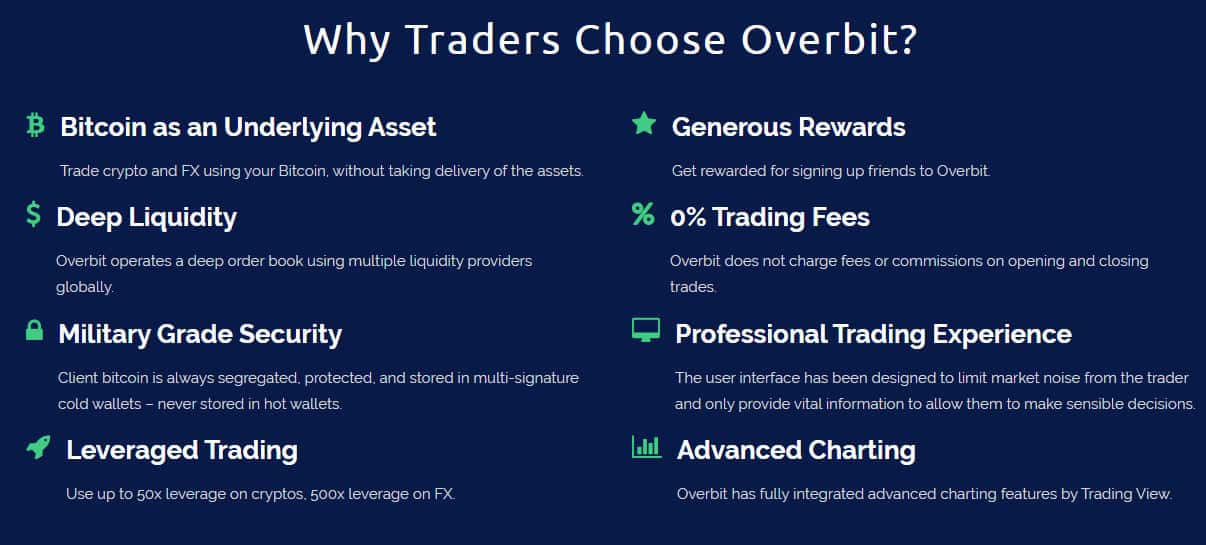 Далее на сайте у мошенников Overbit следуют их довольно сомнительные преимущества, которые не несут в себе абсолютно никакой смысловой нагрузки и расположены аферистами Овербит исключительно для виду. На изображении, расположенном ниже, вы можете наглядно увидеть следующий раздел сайта в исполнении проходимцев Overbit.