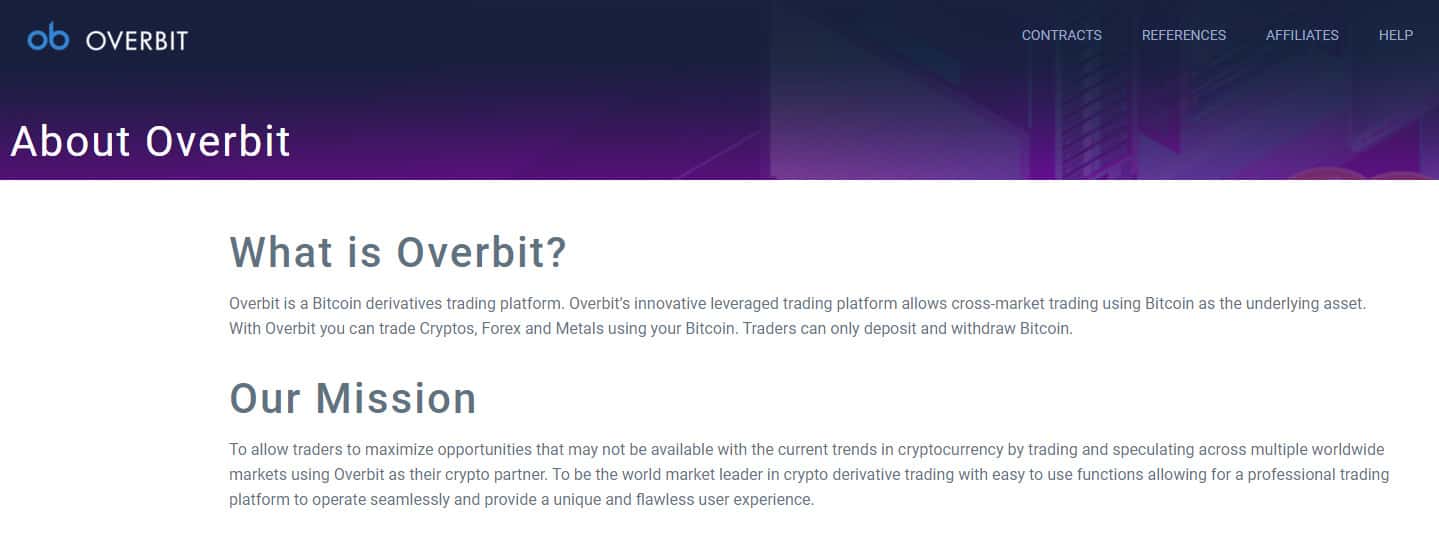 Овербит - очередные мошенники сети интернет, которые занимаются наглым и банальным разводом наивных пользователей сети интернет под предлогом торговли криптовалютой, в ходе которой шулера Overbit оперативно кидают клиентуру и сливаются. В связи с этим иметь дело и сотрудничать с аферистами Овербит Определенно не рекомендуем !!!