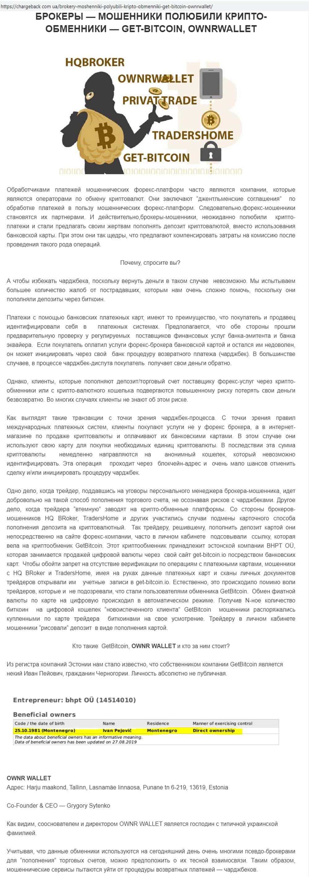 Мошенники Овнр Валлет работают в сговоре с брокерами-разводилами, которые обдирают людей - помогают им скрыть украденное от процедуры возврата и обеспечивают анонимность.