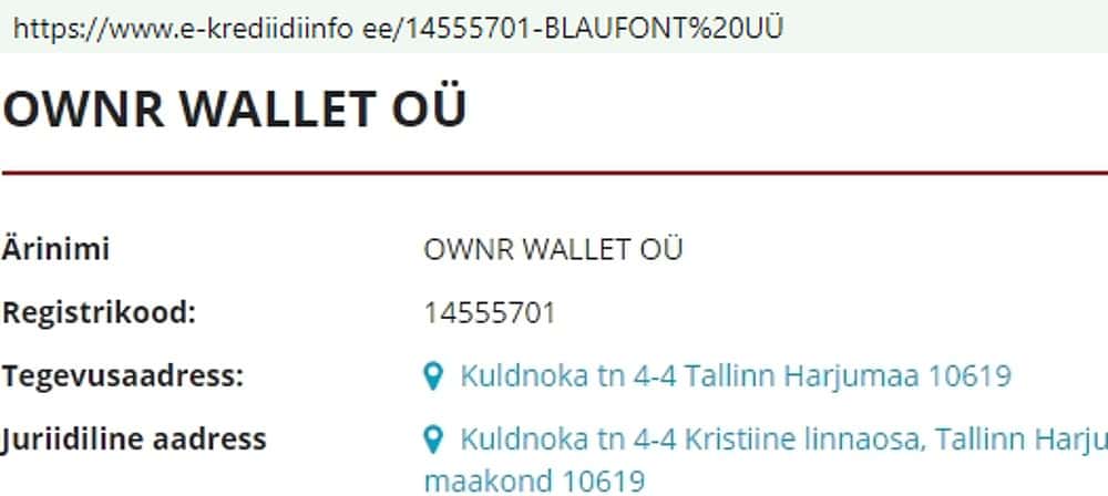 Официальное юридическое лицо, от имени которого действуют спекулянты OwnrWallet, находится в Таллине, но ехать туда бесполезно, по указанному адресу офиса разводил нет: