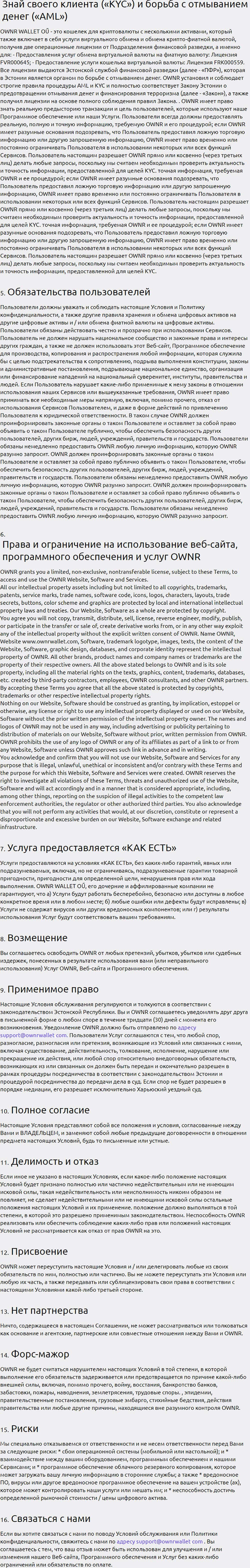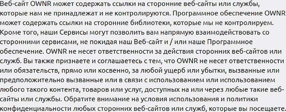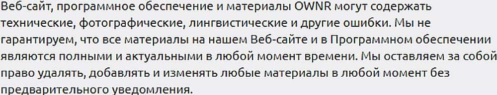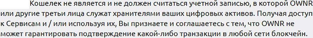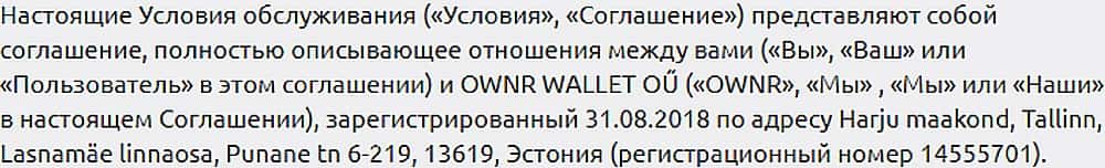 Юридическое прикрытие авантюристов OwnrWallet