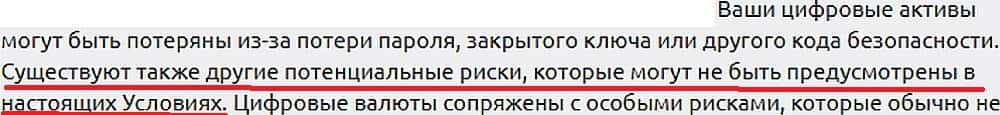О каких рисках, не предусмотренных в условиях, пишут аферисты Овнр Валлет не совсем понятно, но в результате клиент этой криптовалютной лоховозки может понести большой ущерб.