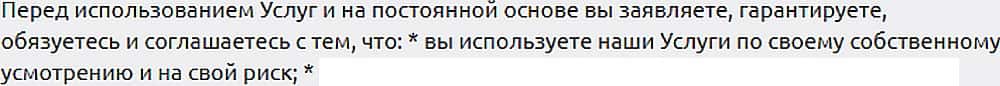 Для сервиса, который должен всегда предоставлять точные данные курсов и котировок, пункт клиентского псевдосоглашения, указанный ниже, является недопустимой позицией.