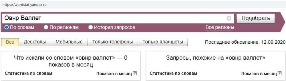 Та же самая история с запросом "ОвнрВаллет" - ноль обращений. Лоховозка Овнр Валлет непопулярна среди людей, так как те сразу понимают, что нет никаких причин доверять плутам.