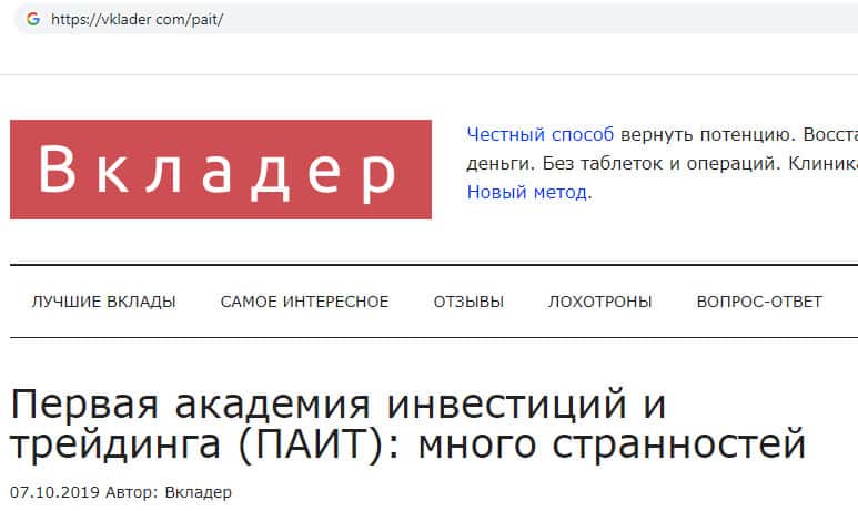 - Обзор главного интернет ресурса лохотрона Первая академия инвестиций и трейдинга - pait ru