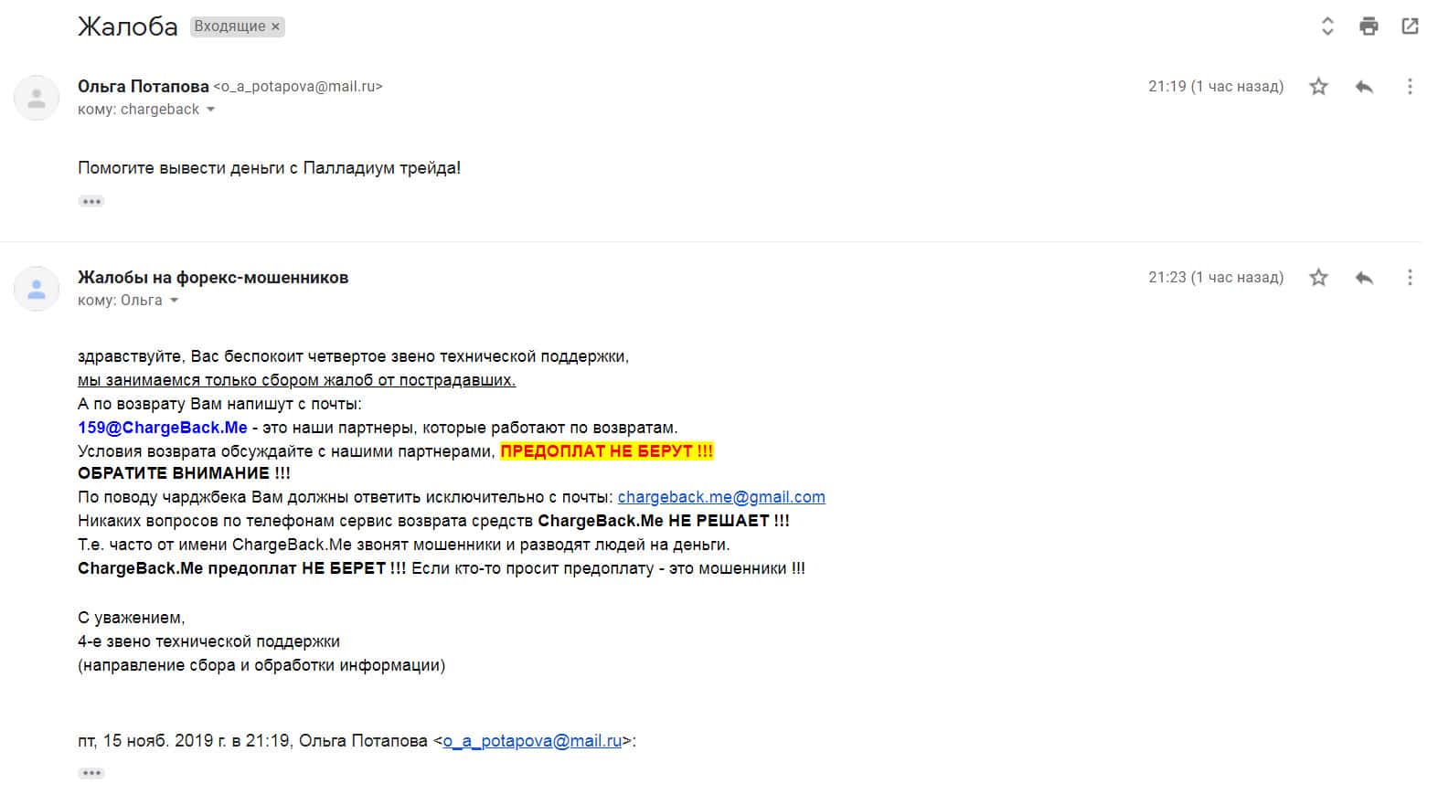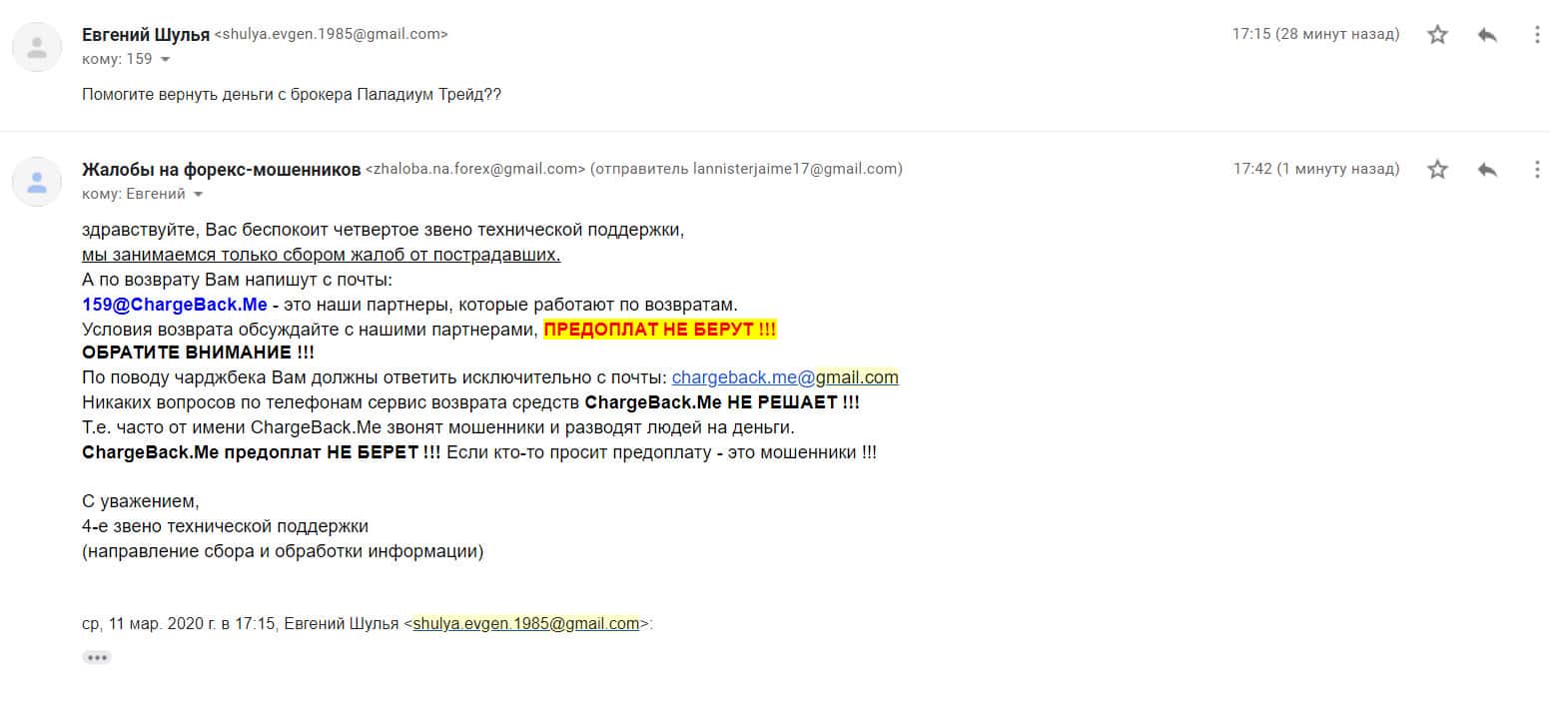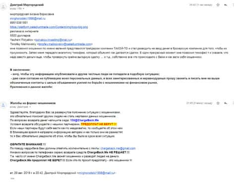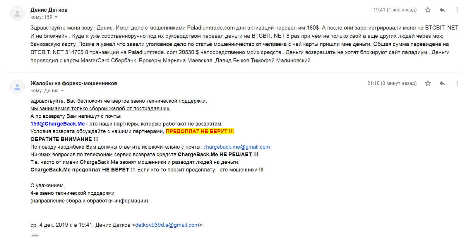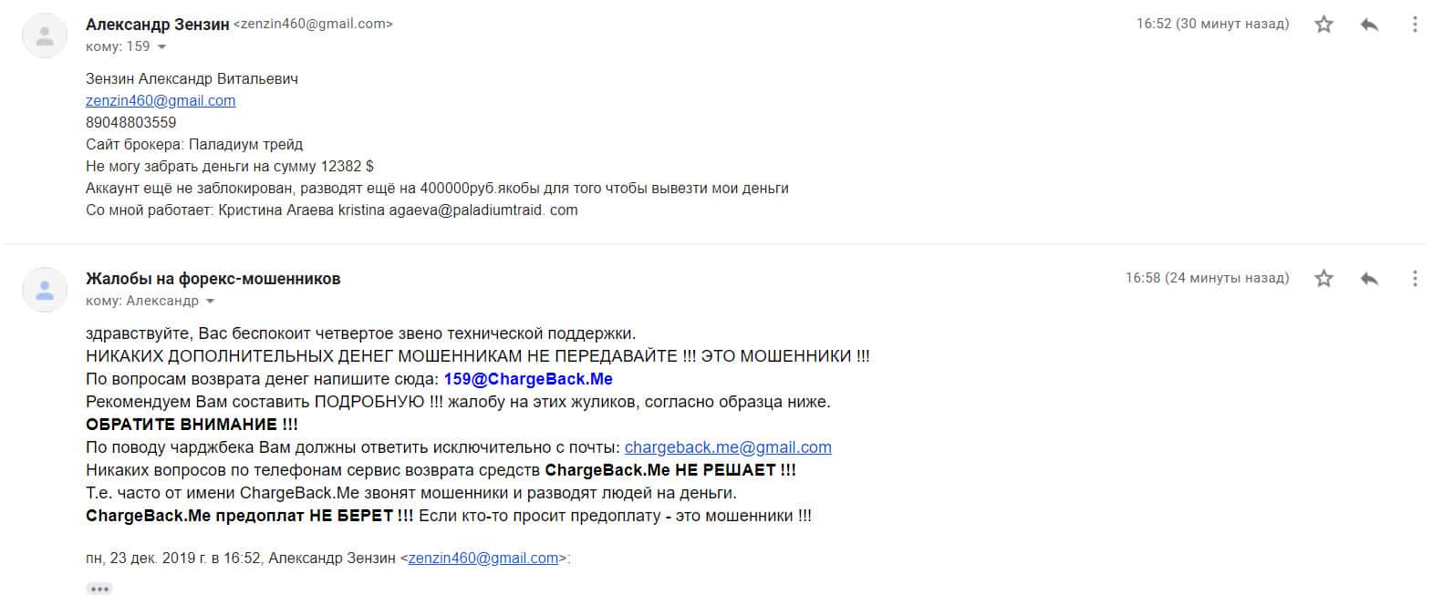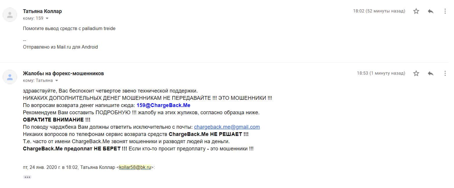 Ниже представлено первоначальное письмо, в котором указаны исходные данные схемы развода со стороны шарлатанов Паладиум Трейд.