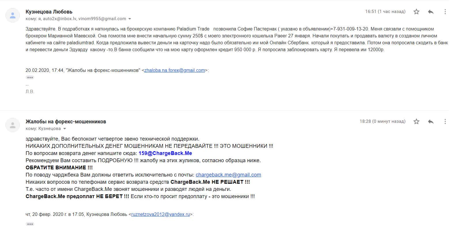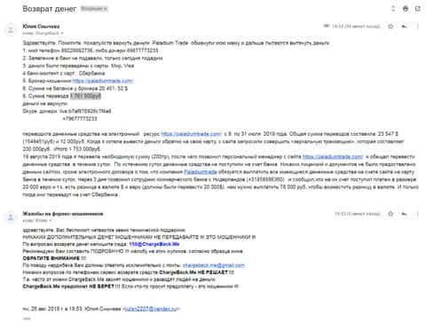 - Жалоба на аферистов Паладиум Трейд от еще одного пострадавшего клиента