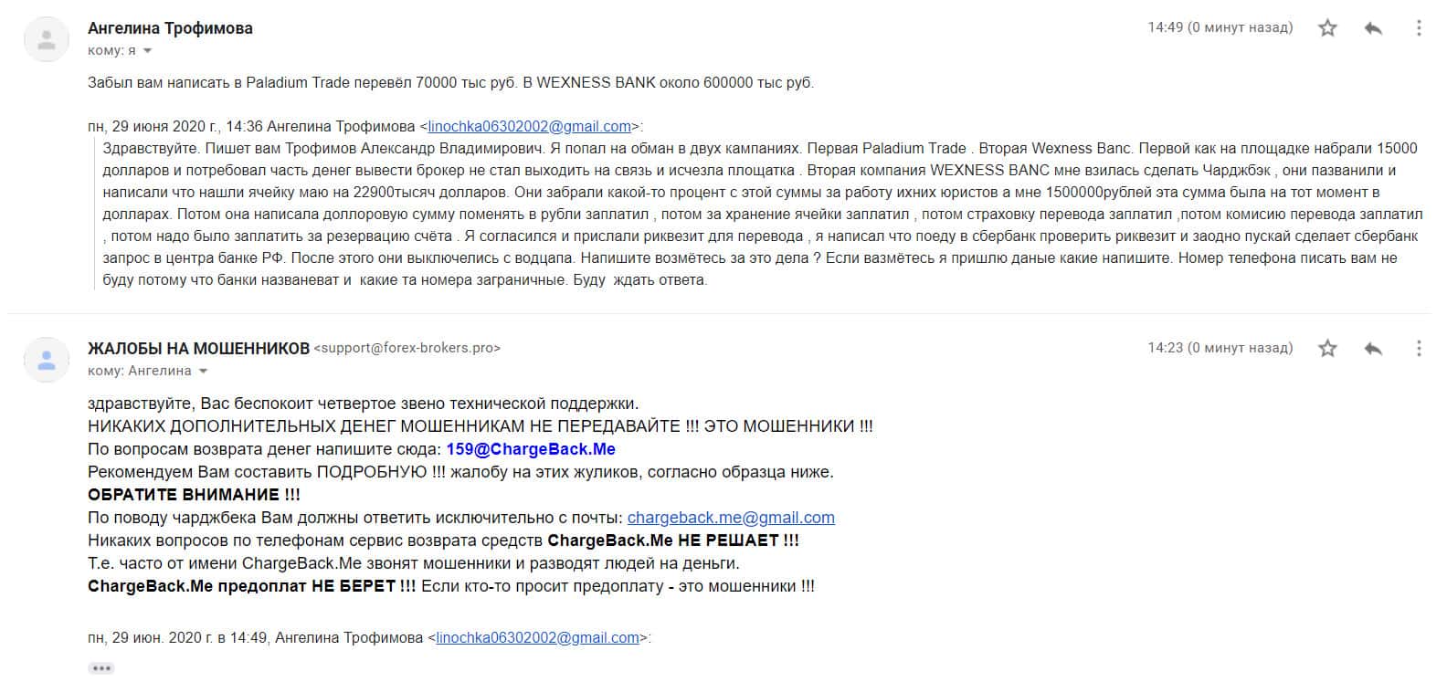 Жалоба на скам-проекты ПаладиумТрейд и ВекснессБанк - клиент лишен 670 тысяч рублей