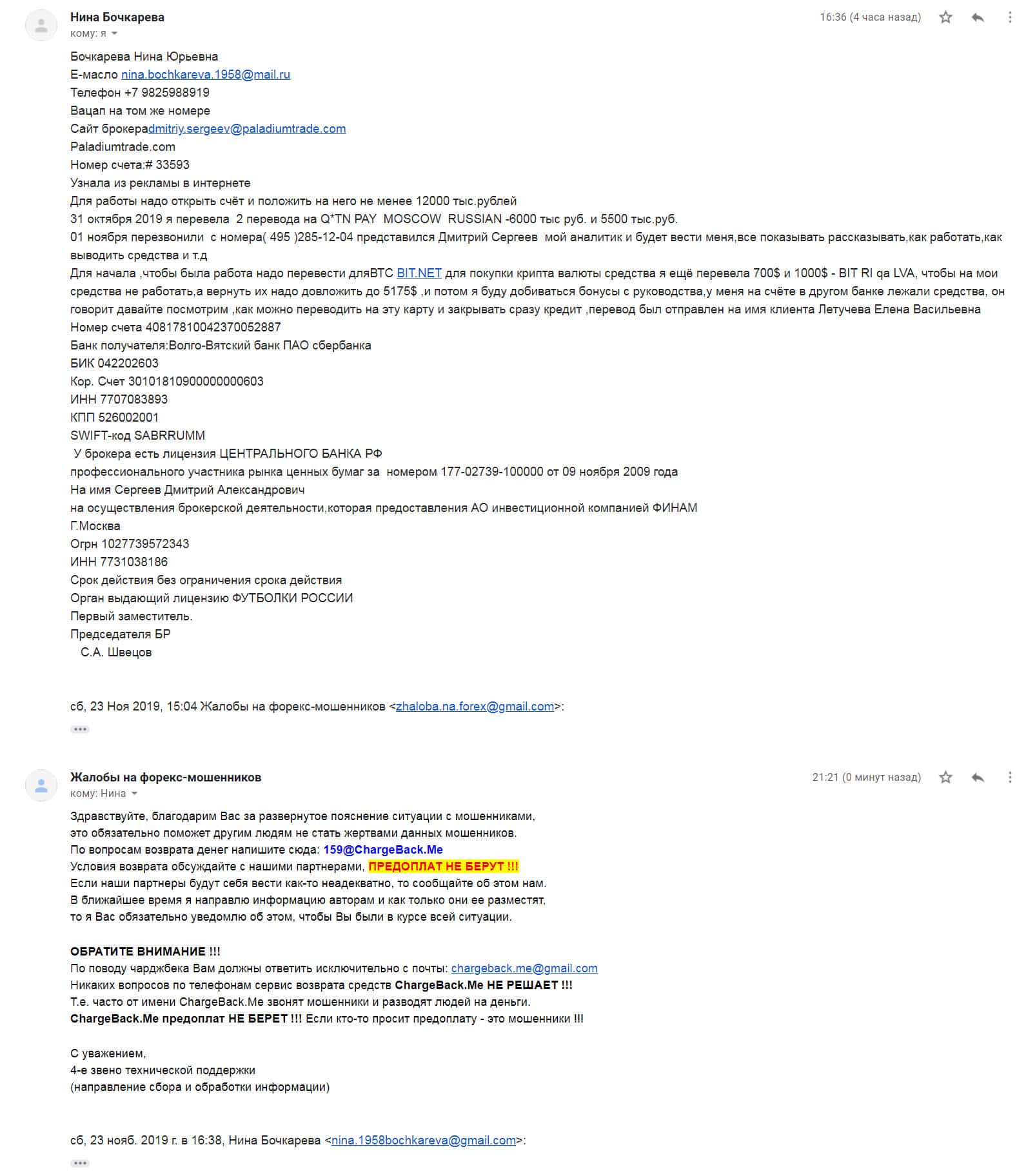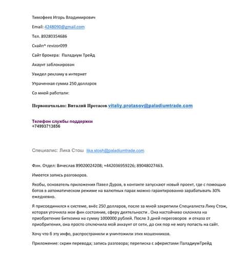- Подробная жалоба на скам брокера Паладиум Трейд - клиент лишился 5500 $