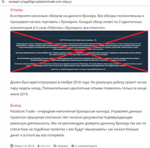 - Обзор мошеннического веб-ресурса конторы PaladiumTrade