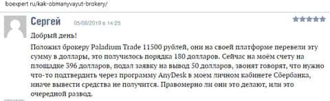 Лохотрон Паладиум Трейд украл у клиента порядка 180 долларов