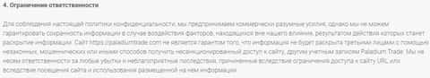 В пользовательском соглашении, которое размещено на сайте конторы PaladiumTrade, есть один пункт, в котором сказано, что они предпринимают все усилия для безопасности личных данных клиента, но в тоже время не дают никаких гарантий. То есть снимают с себя ответственность за любую утечку информации о вас.