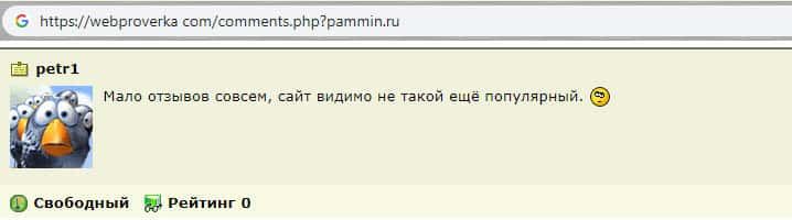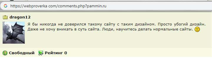 - Пользователь сети высказался по поводу сайта мошеннической организации PamMin