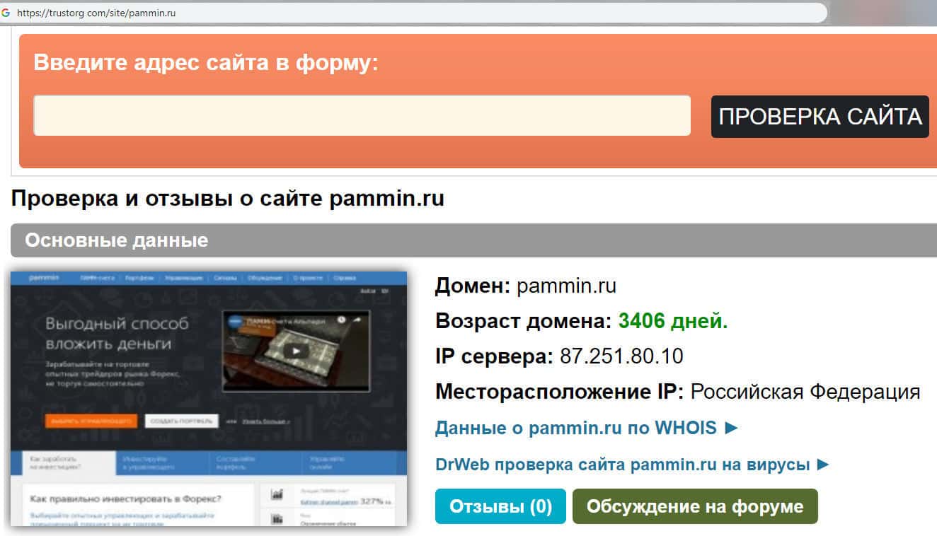 trustorg com - проверка на честность домена мошеннической организации ПамМин