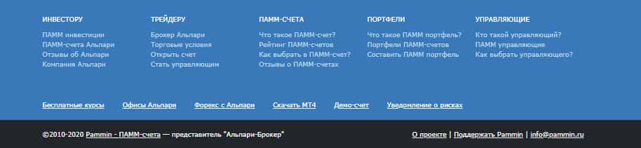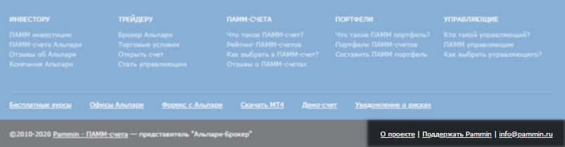 А вот и конец подвального сайта мошеннической конторы ПамМин, на котором, как можно заметить, нет информации о документах, которые в принципе, по стандарту должны здесь быть. Но если внимательно посмотреть, то указывается какой-то брокер, на который мы сделаем обзор немного позже. В данном случае, мы не рекомендуем связываться с мошенниками.