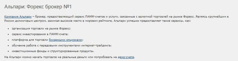 Преступная организация PamMin пиарит Брокера Альпари на своём сайте