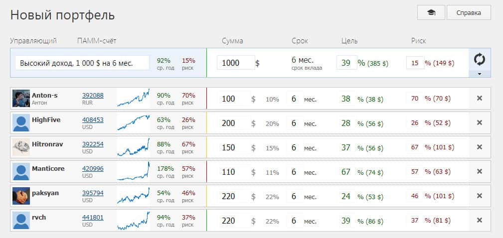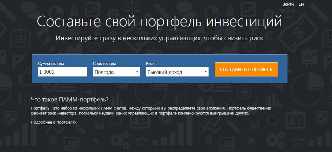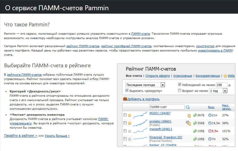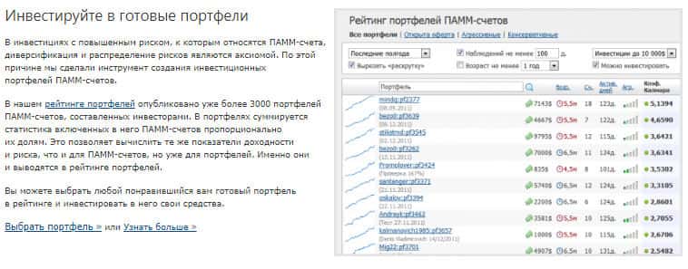 Инвестирование в готовые портфели на официальном сайте конторы ПамМин предлагают шулера. Как говорят сами мошенники "В инвестициях с повышенным риском, к которым относятся ПАММ-счета, диверсификация и распределение рисков являются аксиомой." Чувствуете? Кидаловом пахнет! Причем большим, с большими потерями, ведь Вам не вернут утраченное.