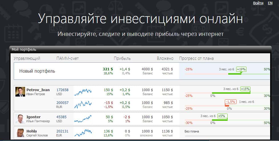 Данная преступная организация предлагает Вам создать свой портфель, как они это называют "портфель инвестиций". Но на самом деле, всё это выглядит убого, и не имеет ничего общего с инвестициями и рынком в целом. Мошенники рассказывают, что же такое ПАММ-портфель, но понять в целом, что это такое и с чем его едят крайне сложно, потому как много лжи.