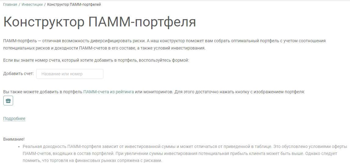 После того, как мошенническая контора заинтересует Вас в создании своего ПАММ-портфеля, Вам будет предложено перейти на конструктор данной бесполезной "услуги", если её можно таковой назвать. Всё просто, для тех, кто не разбирается, тут всё написано: какую сумму следует вложить и куда, кстати, сумма составляет 1000 долларов США, в кого инвестировать и т. д.