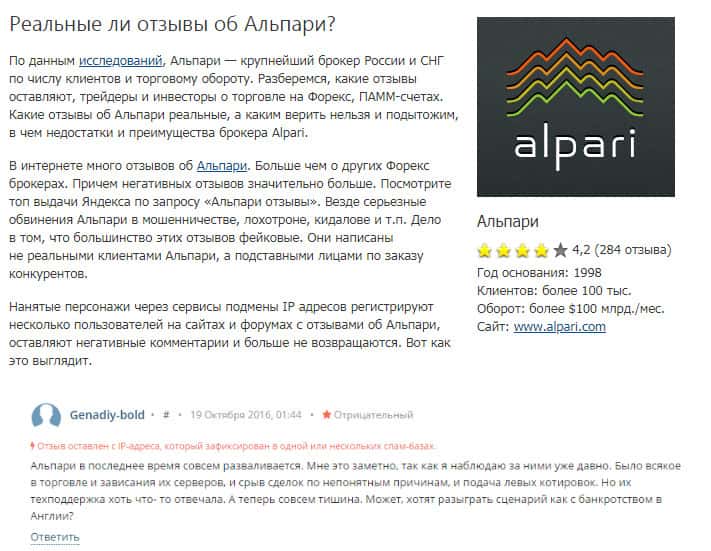 На сайте мошеннической конторы ПамМин есть вкладка с названием "Отзывы об Альпари". То, что Вы увидите далее и является пиаром, по другому и быть не может в принципе. Так как контора Альпари и ПамМин работают вместе, шулера решили пропиарить мошенников, дабы у них были потребители, так же как и у ПамМин. Всё просто и прозрачно, дабы заманить лохов.