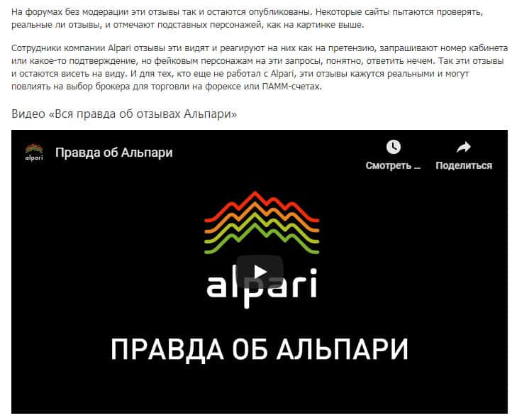 Реальные ли отзывы о конторе Альпари? Мошенники вешают Вам лапшу на уши тем, когда говорят о том, что у них безупречная работа конторы. Мошенническая контора ПамМин для того чтобы у конторы Альпари была хорошая репутация, выпустили на свой официальный сайт видео якобы о том, что контора отлично работает, и проблем у них нет. Конечно же это ложь.