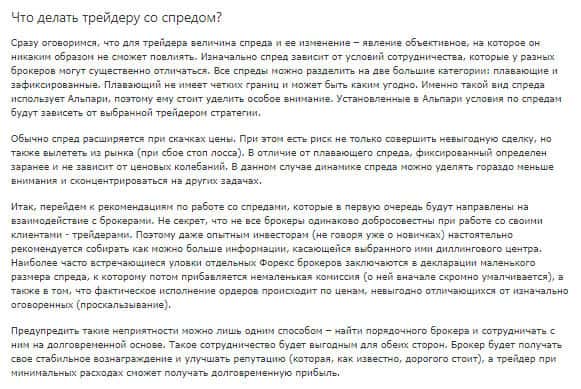 Также, мошенники из преступной организации под названием PamMin рассказывают на своём официальном сайте о "спредах". У них есть статья на эту тему, ниже, к которой мы пришли. Собственно, к самой статье нет претензий, ну кроме того, что данная статья взята с какого-то ресурса в сети интернет. В любом случае, нельзя доверять этим лохотронщикам.